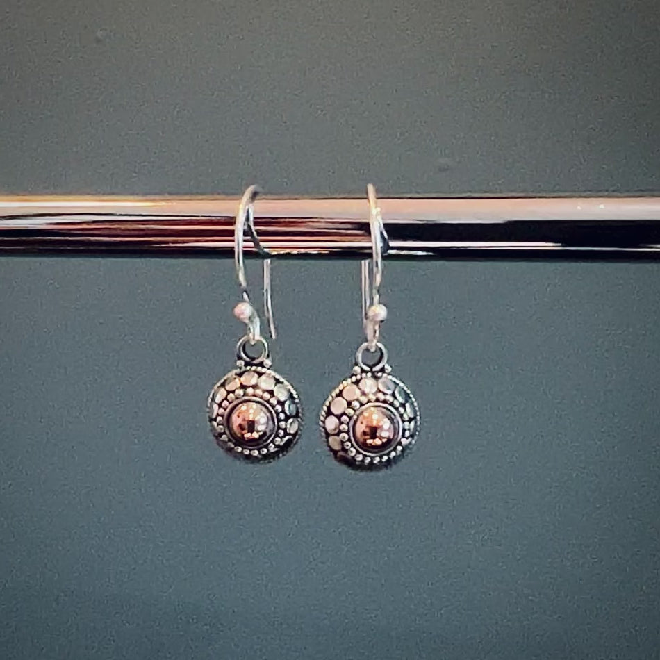 Sterling silver with 18k rose gold detail. 9mm diameter.