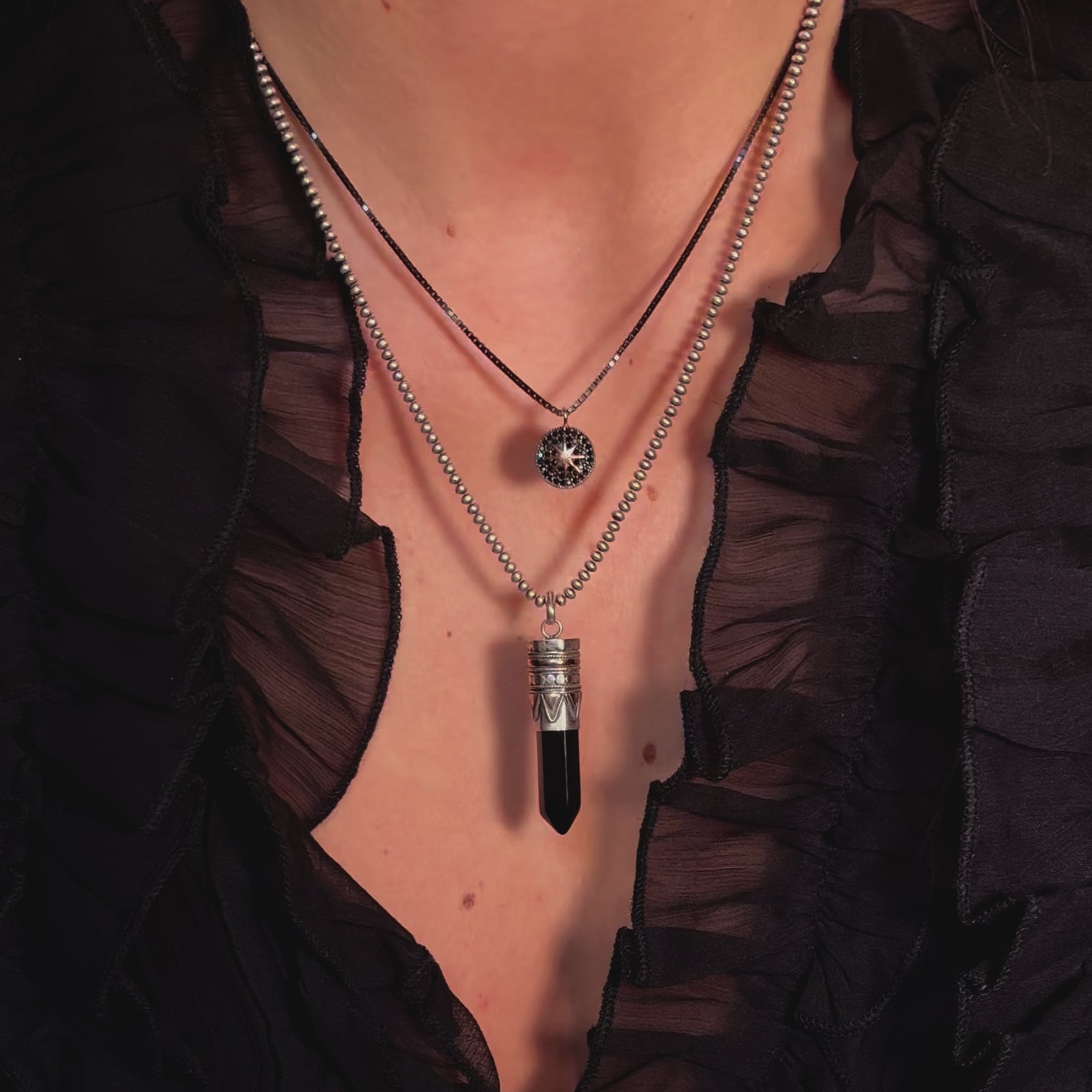Black rhodium plated silver chain length: 16"-17” (42-44cm)