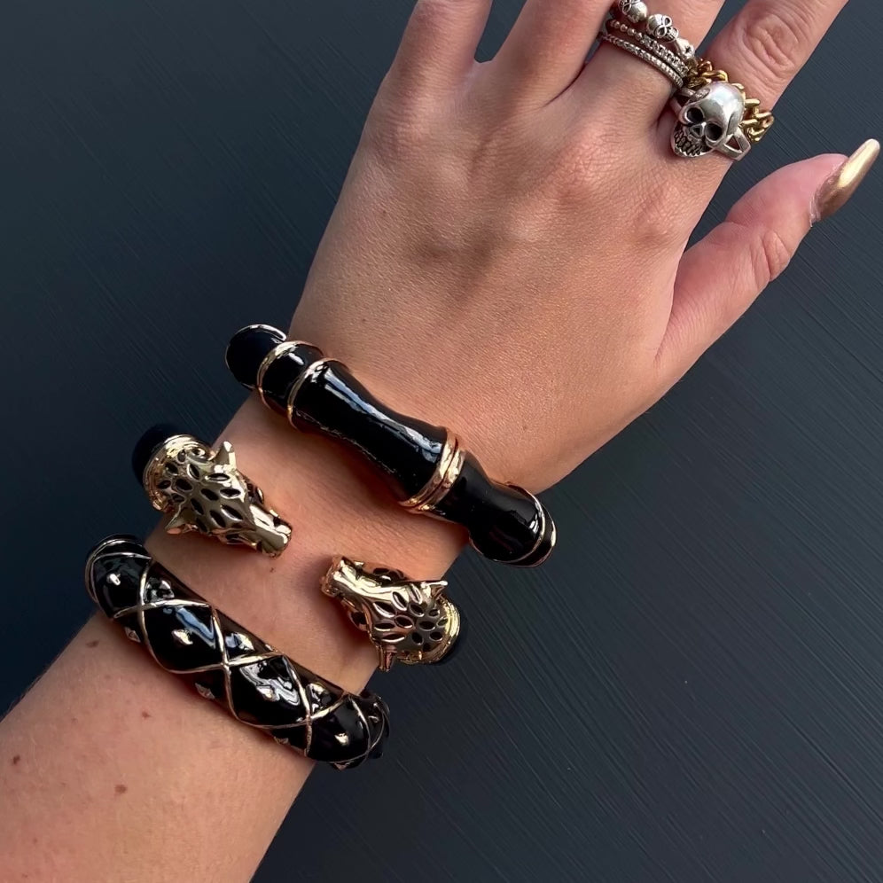 This fun and fabulous ‘Leopards in Love’ black and gold enamel bangle is sure to make an impression!
