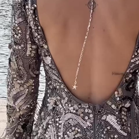This can be worn as a super long chain, perfect for layering, or at a shorter length with the star feature at the front. Or even as a chocker necklace with the chain feature worn at your back - which looks stunning with an open back dress!